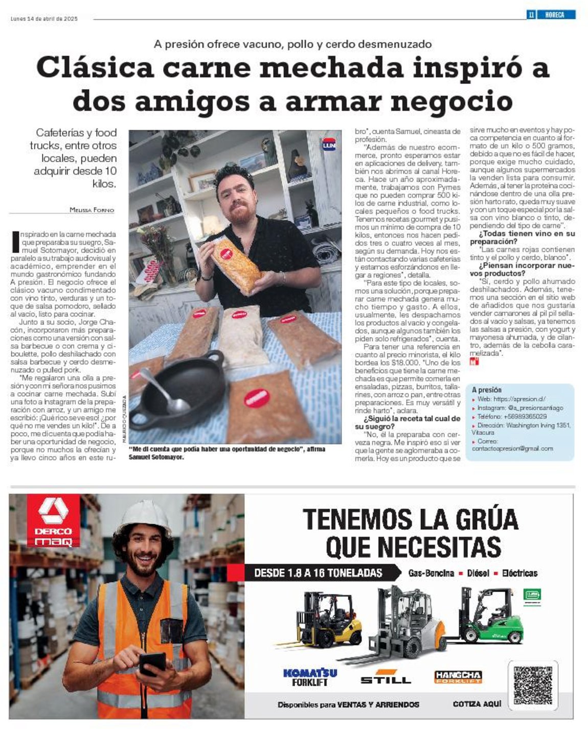 "Me regalaron una olla a presión y con mi señora nos pusimos a cocinar carne mechada. Subí una foto a Instagram de la preparación con arroz, y un amigo me escribió: ¡Qué rico se ve eso! ¿por qué no me vendes un kilo!". De a poco, me di cuenta que podía haber una oportunidad de negocio, porque no muchos la ofrecían y ya llevo cinco años en este rubro", cuenta Samuel, cineasta de profesión.