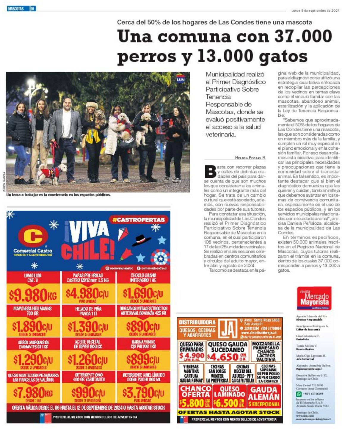 "Sabemos que aproximadamente el 50% de los hogares de Las Condes tiene una mascota, las que son consideradas como un miembro más de la familia, y cumplen un rol muy especial en el plano emocional y en la cohesión familiar. Por eso desarrollamos esta iniciativa, para identificar las principales necesidades y preocupaciones que tiene la comunidad sobre el bienestar animal. En tal sentido, es importante destacar que si bien el diagnóstico demuestra que las quieren y cuidan, también refleja que debemos avanzar en los temas de convivencia comunitaria, especialmente en el uso de los espacios públicos, y en los servicios municipales relacionados con el cuidado animal", precisa Daniela Peñaloza, alcaldesa de la municipalidad de Las Condes.