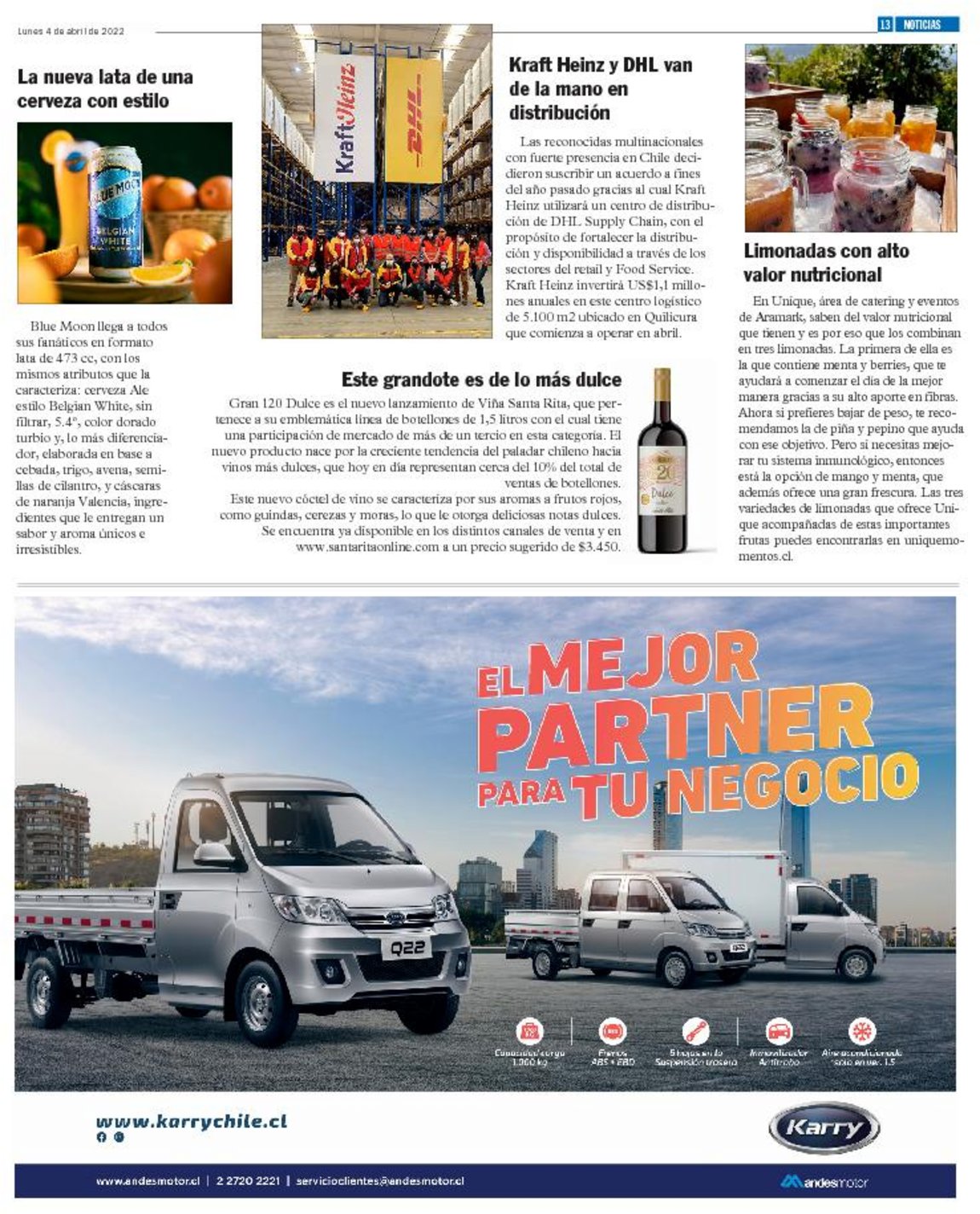 Las reconocidas multinacionales con fuerte presencia en Chile decidieron suscribir un acuerdo a fines del año pasado gracias al cual Kraft Heinz utilizará un centro de distribución de DHL Supply Chain, con el propósito de fortalecer la distribución y disponibilidad a través de los sectores del retail y Food Service. Kraft Heinz invertirá US$1,1 millones anuales en este centro logístico de 5.100 m2 ubicado en Quilicura que comienza a operar en abril.