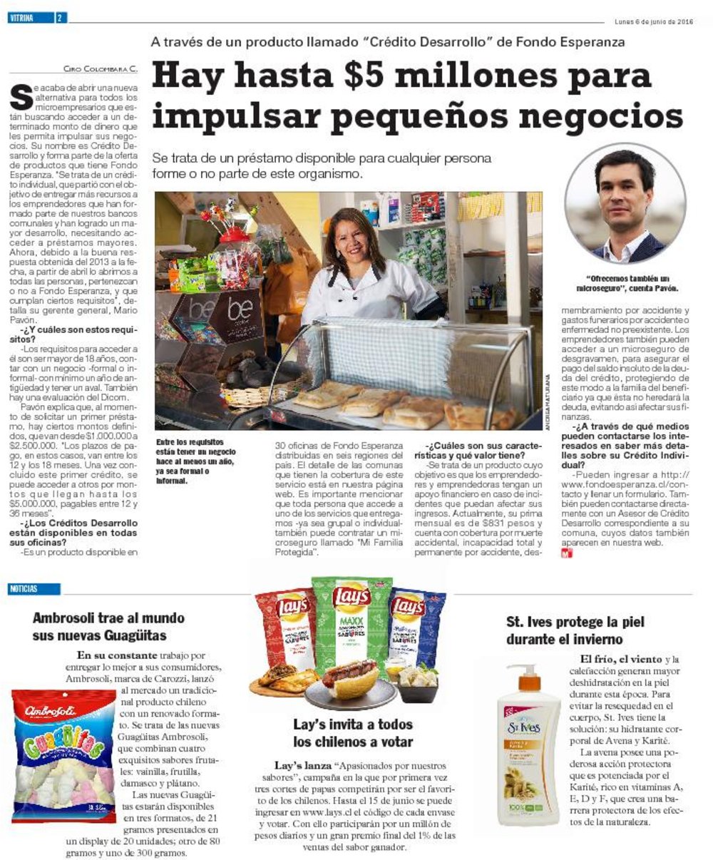 Se acaba de abrir una nueva alternativa para todos los microempresarios que están buscando acceder a un determinado monto de dinero que les permita impulsar sus negocios. Su nombre es Crédito Desarrollo y forma parte de la oferta de productos que tiene Fondo Esperanza. "Se trata de un crédito individual, que partió con el objetivo de entregar más recursos a los emprendedores que han formado parte de nuestros bancos comunales y han logrado un mayor desarrollo, necesitando acceder a préstamos mayores. Ahora, debido a la buena respuesta obtenida del 2013 a la fecha, a partir de abril lo abrimos a todas las personas, pertenezcan o no a Fondo Esperanza, y que cumplan ciertos requisitos", detalla su gerente general, Mario Pavón.