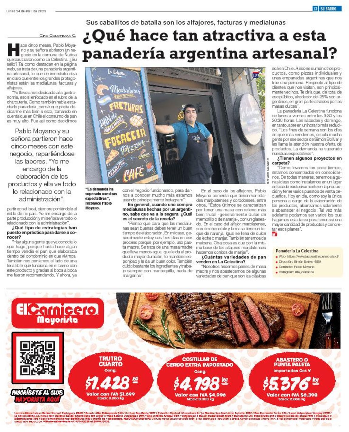 La panadería La Celestina funciona de lunes a viernes entre las 9:30 y las 20:30 horas. Los sábados y domingo, en tanto, abre en un horario más reducido. "Los fines de semana son los días en que más vendemos, circula mucha gente por ese sector de Simón Bolívar y les llama la atención nuestra oferta de productos. La demanda ha superado nuestras expectativas".