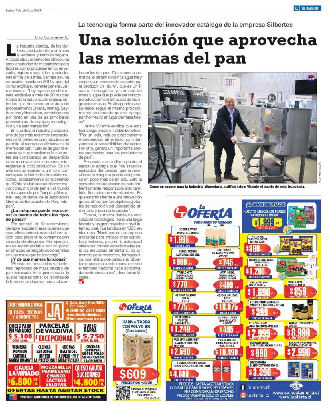 En cuanto a la industria panadera, una de las más recientes innovaciones de Silbertec es una máquina que permite el reproceso eficiente de la merma del pan. "Esto es de gran relevancia ya que transforma lo que antes era considerado un desperdicio en un recurso valioso que puede reintegrarse al ciclo productivo. Es un avance que representa un hito importante para la industria alimentaria nacional, especialmente considerando que Chile se ubica como el tercer mayor consumidor de pan en el mundo -solo superado por Turquía y Alemania-, según datos de la Asociación Gremial de Industriales del Pan, Indupan".