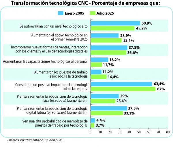 "Es un avance importante porque demuestra que las empresas de los sectores que representamos reconocen que la tecnología es un aporte positivo porque las hace más eficientes, porque las ayuda a disminuir los costos, quizás las hace llegar a un escenario donde antes no hubieran podido", detalla la gerente de Estudios de la CNC, Bernardita Silva.